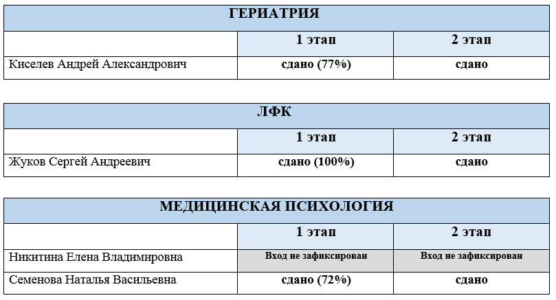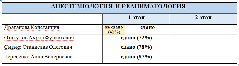 РЕЗУЛЬТАТЫ ПРОВЕДЕНИЯ ПЕРВИЧНОЙ СПЕЦИАЛИЗИРОВАННОЙ АККРЕДИТАЦИИ
