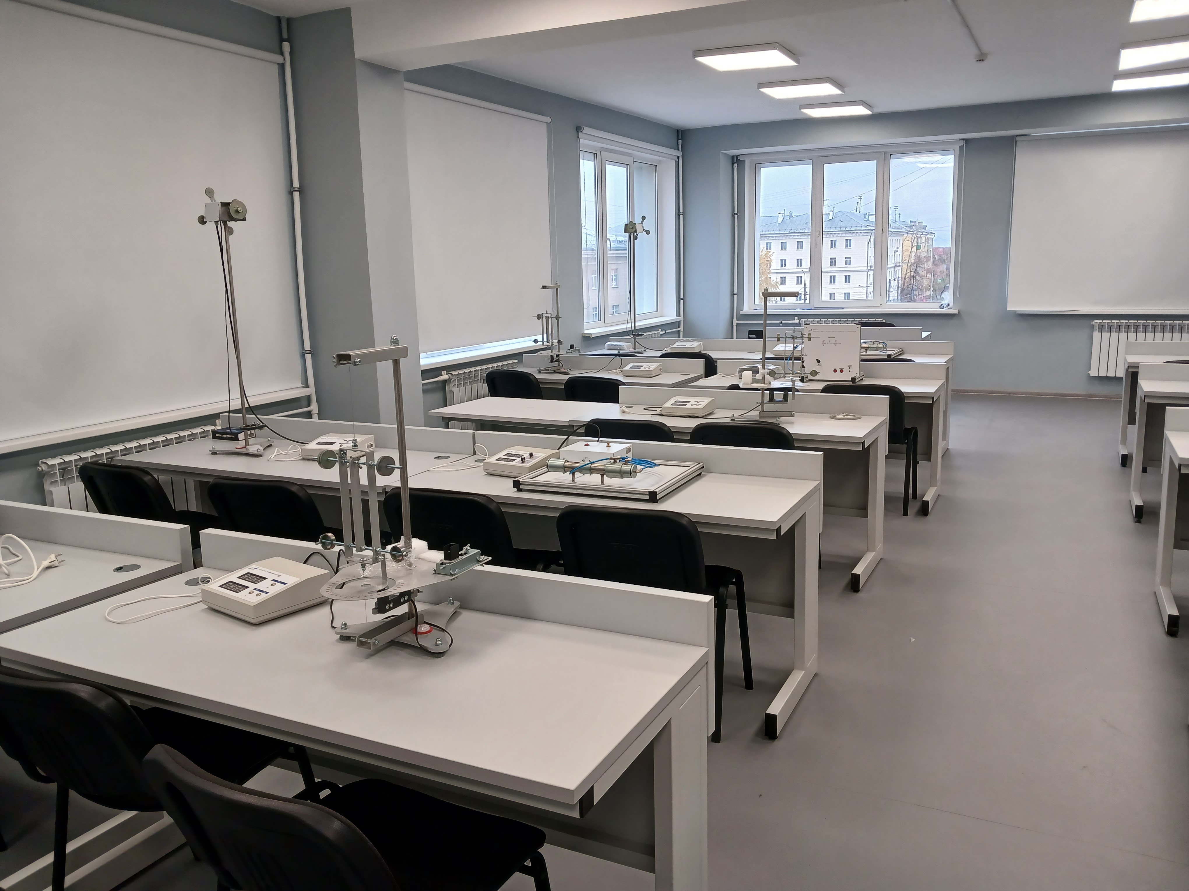 В настоящее время материально-техническую базу кафедры составляют 8 учебных лабораторий для проведения занятий физического практикума. В 2024 г. произведено переоснащение 3-х лабораторий 42 новыми установками.