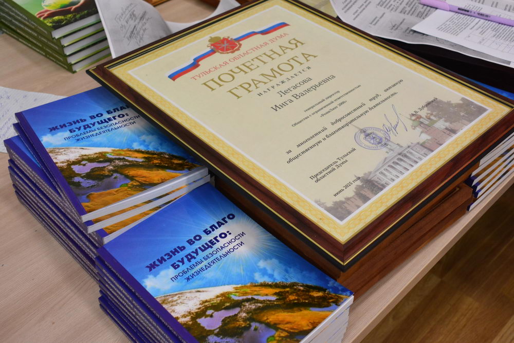 Галина Ивановна выразила глубокую признательность дочери академика Легасова, Инге Валерьевне, и вручила ей Почётную грамоту Тульской областной Думы.