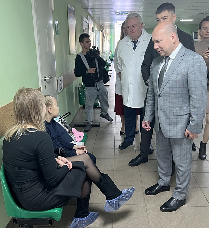 26 сентября Тульскую детскую областную больницу посетили заместитель председателя Правительства Тульской области Дмитрий Марков и министр здравоохранения региона Сергей Мухин. Они пообщались с медработниками и пациентами, а также со студентами III курса Мединститута ТулГУ. Дважды в неделю учебные занятия проходят на базе детской больницы. Будущие врачи вместе с опытными коллегами изучают клинические случаи и участвуют в обходах. Дмитрий Марков пожелал ребятам успехов в учебе и научной деятельности.
