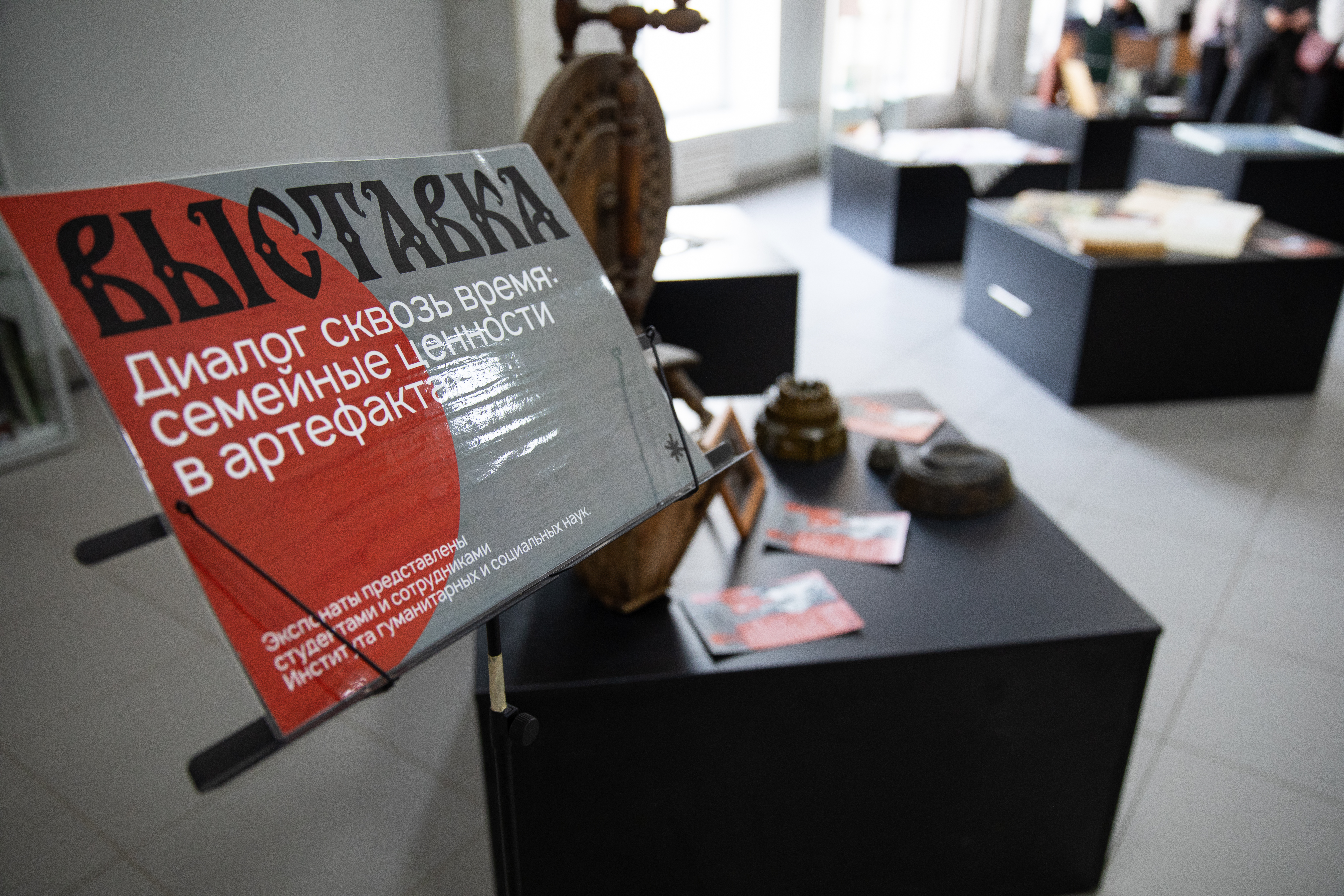 Анастасия Александровна пригласила участников посетить выставку «Диалог сквозь время: семейные ценности через артефакты», с любовью подготовленную преподавателями и студентами ИГСН.