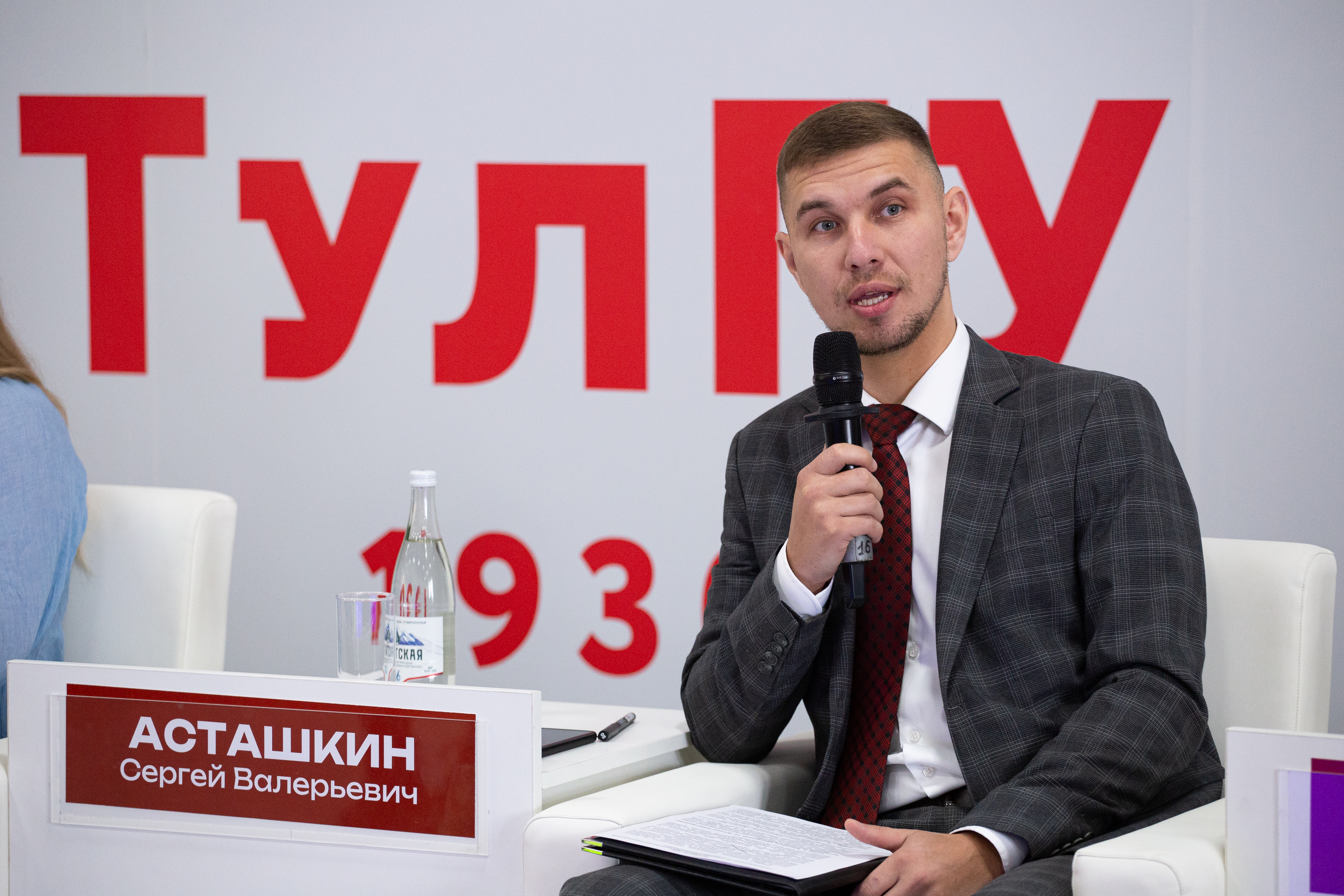 Большой работе по патриотическому воспитанию молодёжи и подрастающего поколения, которая проводится в нашем регионе, посвятил своё выступление заместитель министра молодёжной политики Тульской области Сергей Валерьевич Асташкин. Он рассказал о комплексе мероприятий, направленных на вовлечение юношей и девушек в социально-полезную деятельность и формирование у них традиционных ценностей российского общества.