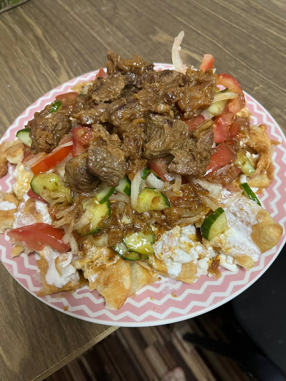 – А это – курутоб, наше национальное блюдо, – рассказывает четверокурсница. – Нужно обжарить мясо и кусочки слоёного теста, тоненько нарезать лук, огурцы, помидоры. После чего соединить все ингредиенты, добавить катык – можно заменить на кефир или простоквашу – и посыпать зеленью. Получается очень вкусно.