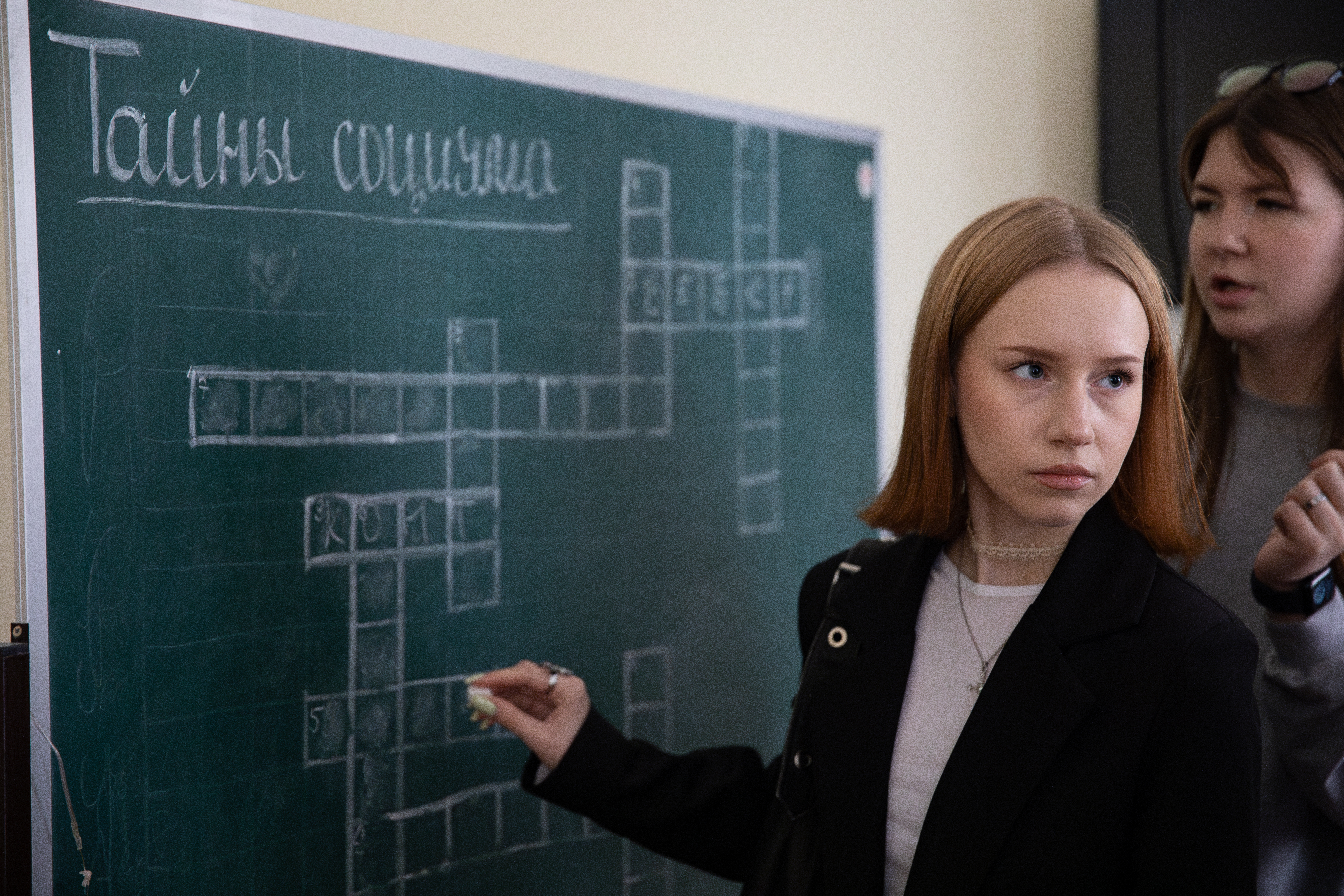 На второй станции первокурсники угадывали известных социологов по изображениям их бород, на третьей разгадывали социологический кроссворд, на четвёртой формулировали социологическое понятие, а на пятой уже жестами, на манер игры «Крокодил», объясняли его.