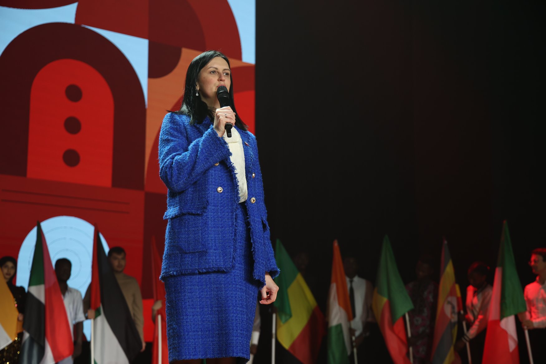 Со сцены гостей праздника приветствовала проректор по международной и проектной деятельности Олеся Евгеньевна Лабадзе: «Безумно приятно видеть в этом зале столько совершенно разных и уникальных людей. Каждый год, вот уже 20 лет, мы вкладываем большой смысл в это мероприятие — объединение народов со всего мира. В этот день мы сможем окунуться в культуру, творчество иностранных студентов не только нашего вуза, но и приглашенных гостей. Давайте и дальше объединять народы разных стран и континентов!».