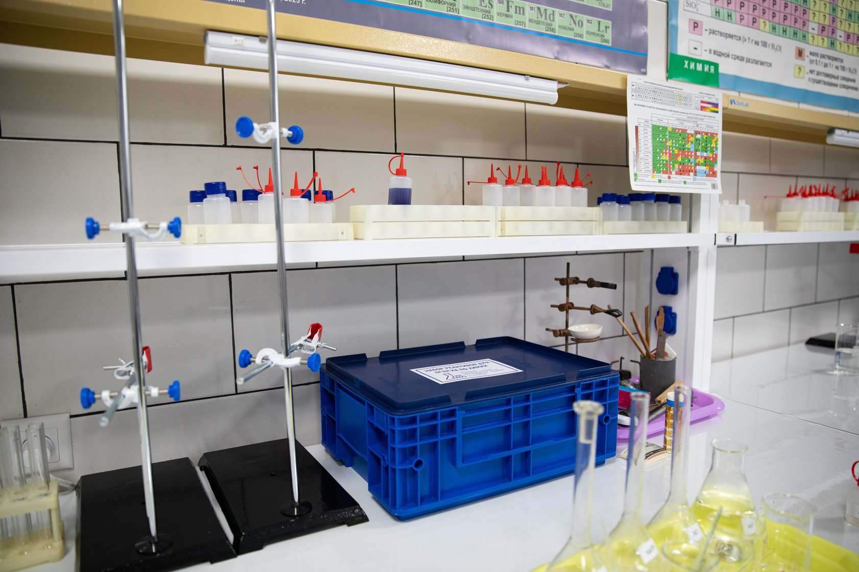 В 2025 году оснастили современным оборудованием лабораторию химии. В состав приборов входят цифровые датчики регистрации температуры, количества ионов и рH-среды. При проведении лабораторных работ информация от датчиков передаётся через bluetooth-адаптер на ноутбук и отображается на экране. Есть возможность сохранения файла с полученными в процессе регистрации данными, последующей обработки этих данных и построения графиков. Для выполнения лабораторных работ приобретена химическая посуда и комплекты реактивов, настенные таблицы. Комплект моделей кристаллических решёток используется при изучении строения веществ с различными типами химических связей.