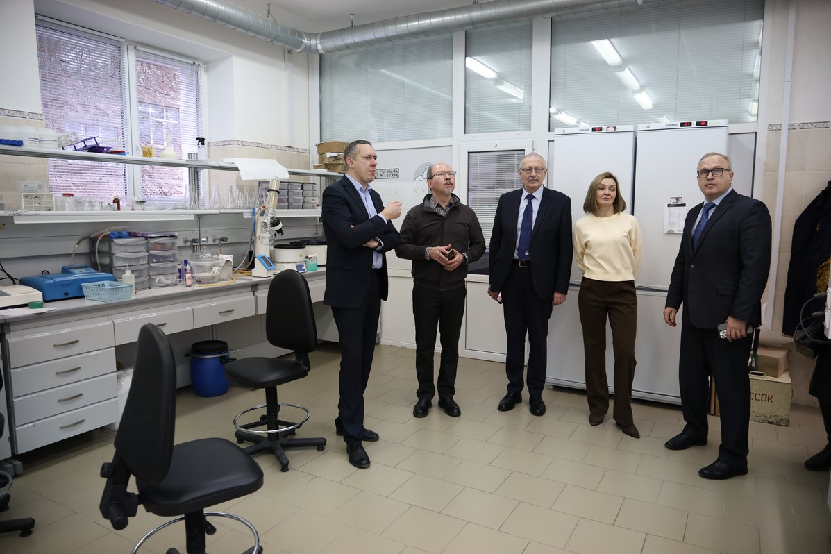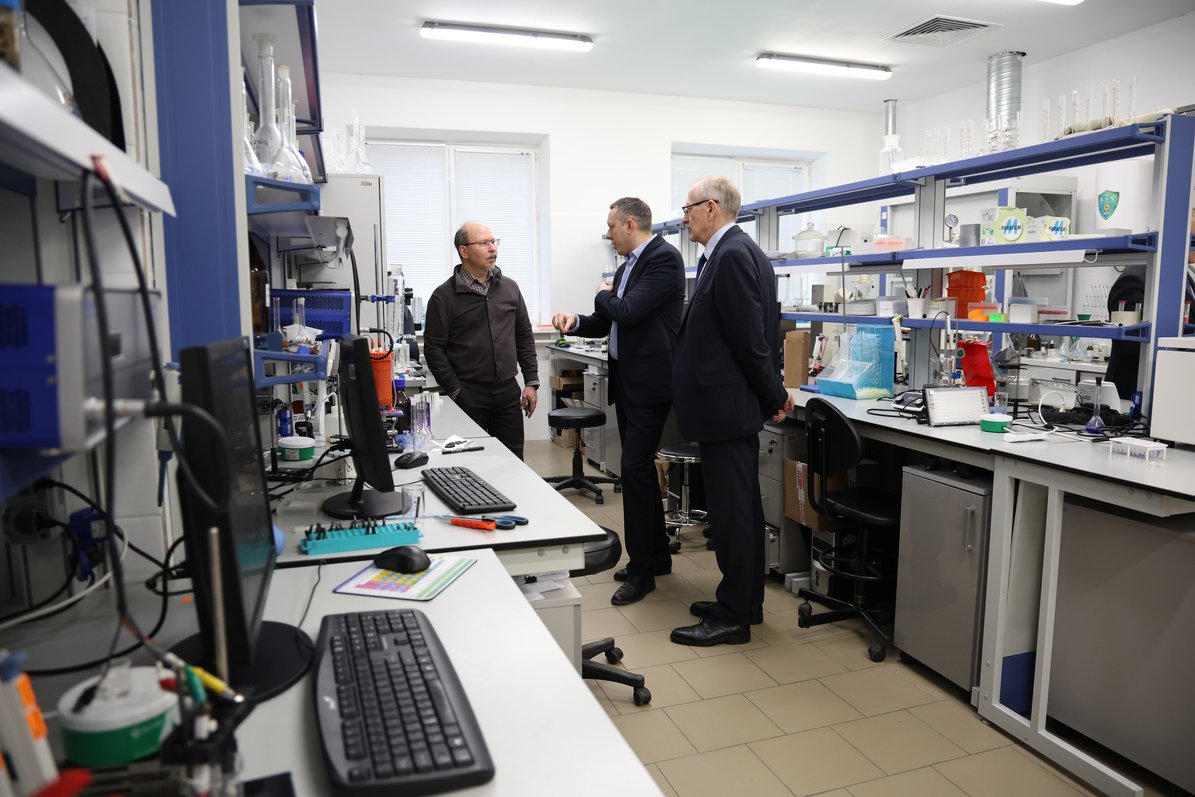 Вячеслав Алексеевич провёл для гостей экскурсию по НИЦ «БиоХимТех» и рассказал о направлениях деятельности входящих в его структуру лабораторий. Основной задачей БиоХимТехЦентра ТулГУ, пояснил он, является создание условий для проведения фундаментальных и прикладных научных исследований, внедрение результатов научных исследований и разработок в практическую деятельность предприятий, развитие кадрового потенциала в научной деятельности посредством включения в состав подразделений студентов, аспирантов и молодых учёных.