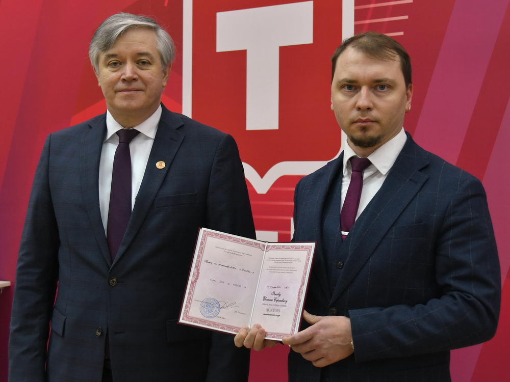 Учёная степень доктора технических наук была присуждена Евгению Сергеевичу Янову (научный руководитель — доктор технических наук, профессор Михаил Сергеевич Воротилин).