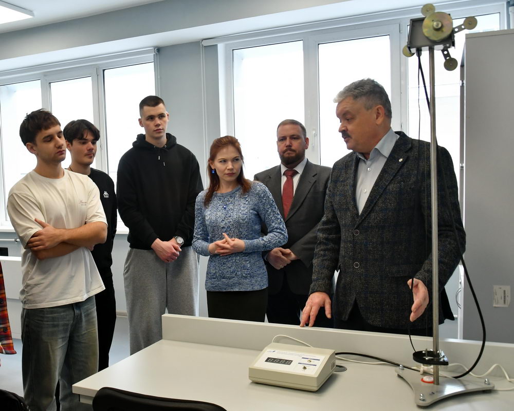 Заведующий кафедрой физики Роман Николаевич Ростовцев провёл экскурсию по обновлённым лабораториям для студентов. Продемонстрировал оборудование для изучения момента инерции, определения вязкости жидкости и вязкости воздуха. Важно, чтобы в голове у студента всегда складывалась связь между теорией и практикой, объяснил преподаватель: в частности, представление о вязкости воздуха имеет важнейшее значение для обеспечения полетов любых летательных аппаратов, в том числе беспилотных.