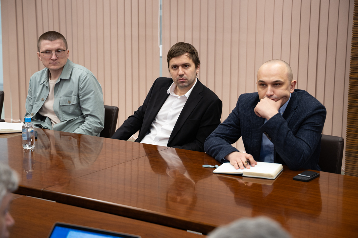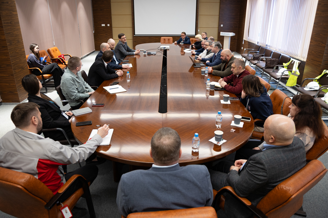 После экскурсии делегация ТулГУ, возглавляемая ректором университета Олегом Александровичем Кравченко, в составе проректоров, директоров институтов и заведующих кафедрами, перешла к столу переговоров. С принимающей стороны во встрече приняли участие заместитель директора департамента технического обслуживания оборудования Сергей Алексеевич Репин, ведущий инженер Павел Александрович Гончаренко и ведущий инженер-электроник Сергей Владимирович Володин. Примечательно, что все трое являются выпускниками Тульского государственного университета, что стало дополнительным подтверждением прочных связей между вузом и производством.